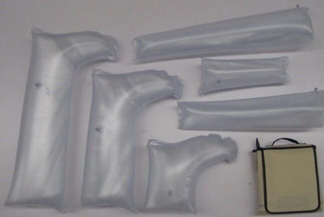 充氣夾板的氣囊放氣只需推拉閥門,經(jīng)過簡單培訓即可使用。它可被X射線穿透,是理想的急救用品。 充氣夾板可通過縮減尺寸用于兒童(半身或全腿),拉鏈便于解脫。